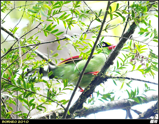這隻藍綠鵲(Common Green Magpie),就在我若有所失地離開神山蘭花植物園時,