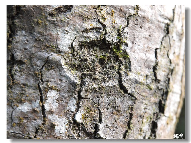 這隻亞洲長疣蛛,正隱身躲在樹皮凹洞,和周圍的顏色和形貌幾乎完全相同。