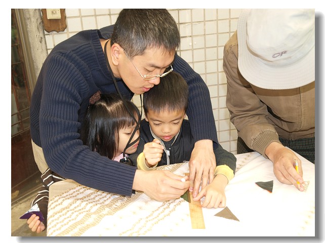 龍蝦和小白兔瑄瑄也煞有其事地加入,畫條線,起個頭,其他的就交給老爸了。