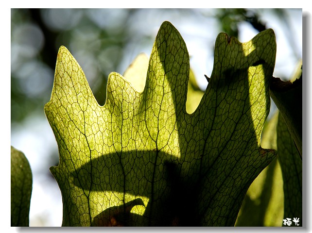 春天,和煦的陽光照射在鮮綠的嫩葉,透著那光,展露美麗的線條。