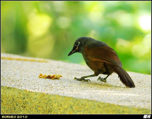 另一種和栗頭噪眉相似的是灰褐噪眉(sunda laughingthrush),上半身全是灰色,白色眼圈。